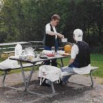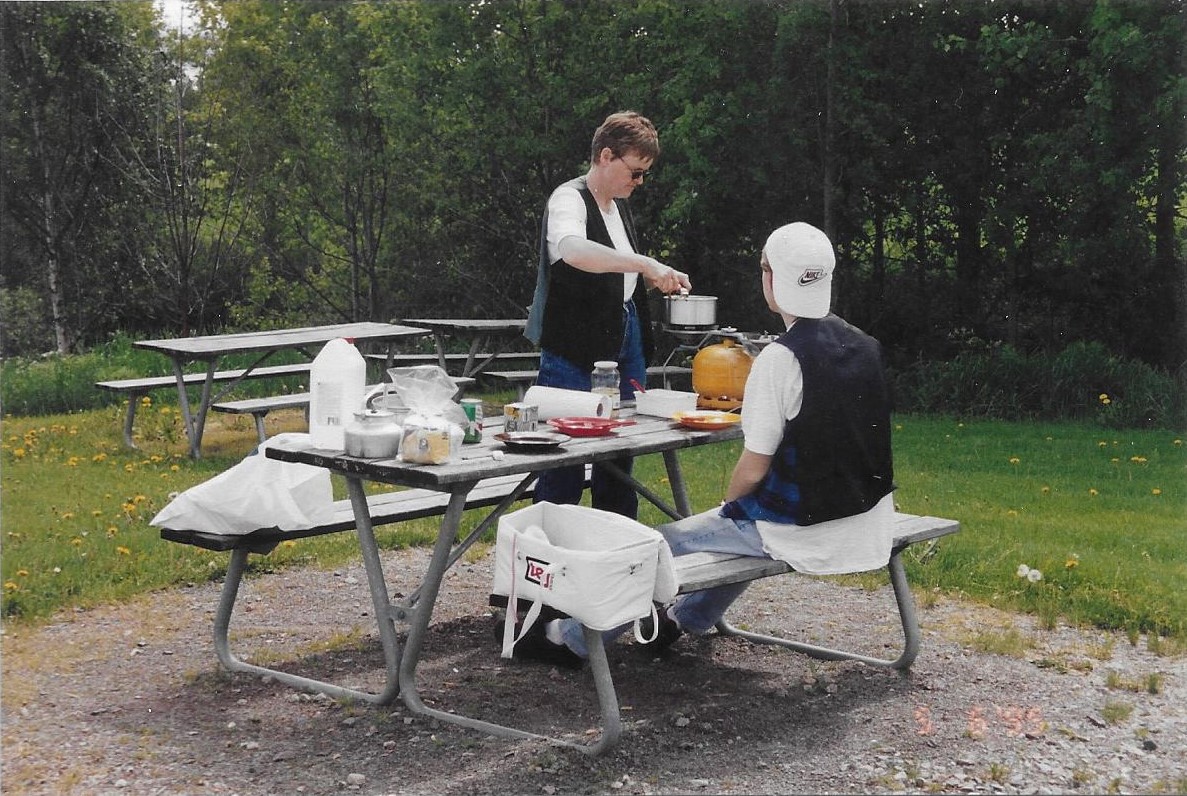 Middagspause ved Sunne rasteplads. Vi havde selv lille gasflaske, et par gryder og campingservice med, plus noget dåsemad.