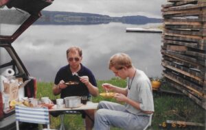 Jeg husker ikke om det var meningen, at vi ville køre op og ned gennem Norge, men på grund af store oversvømmelser ved Lillehammer, kørte vi op gennem Sverige og ned gennem Norge. Det skulle så senere vise sig, at der også i Sverige var meget vand. Ingen af overnatningerne var bestilt hjemmefra, vi fandt dem undervejs. Det var længe før internettets tid og mobiltlf. – og det gik fint med at finde overnatning, enten en hytte på en campingplads, en privat hytte eller et vandrehjem.